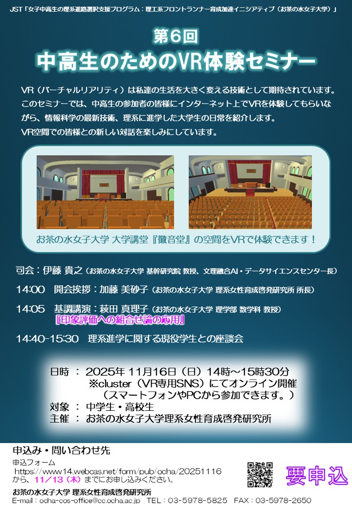 申込方法 | 申込フォーム https://www14.webcas.net/form/pub/ocha/20251116 にて期限までにお申し込み下さい。 ![]() |
