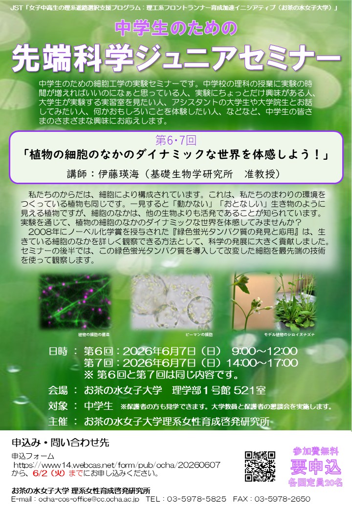 | 申込方法 | 申込フォーム https://www14.webcas.net/form/pub/ocha/20260607 にて期限までにお申し込み下さい。 ![]() |