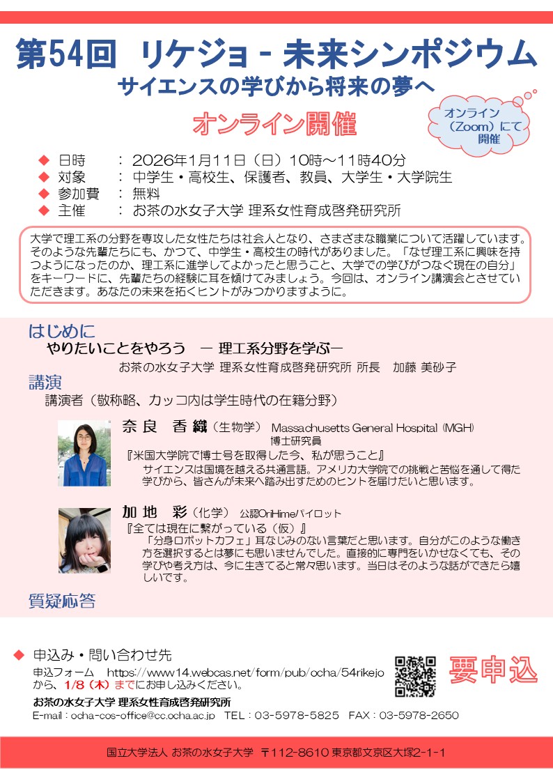 | 申込方法 | 申込フォーム https://www14.webcas.net/form/pub/ocha/20260111 にて期限までにお申し込み下さい。 ![]() |