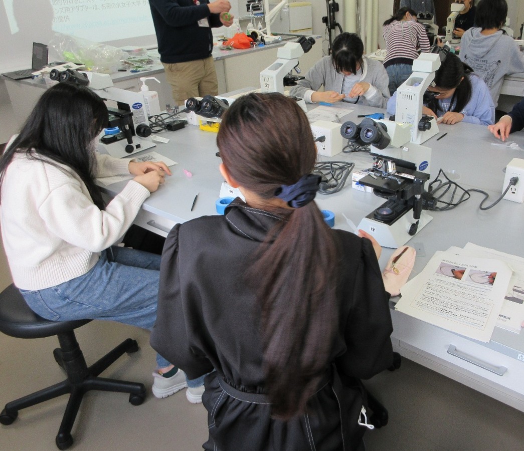 講師は植村知博先生(お茶の水女子大学理学部生物学科・教授)と岩崎貴也先生(お茶の水女子大学理学部生物学科・講師)が担当し、アシスタントはお茶の水女子大学の大学院生2人と学部生1人が務めました。